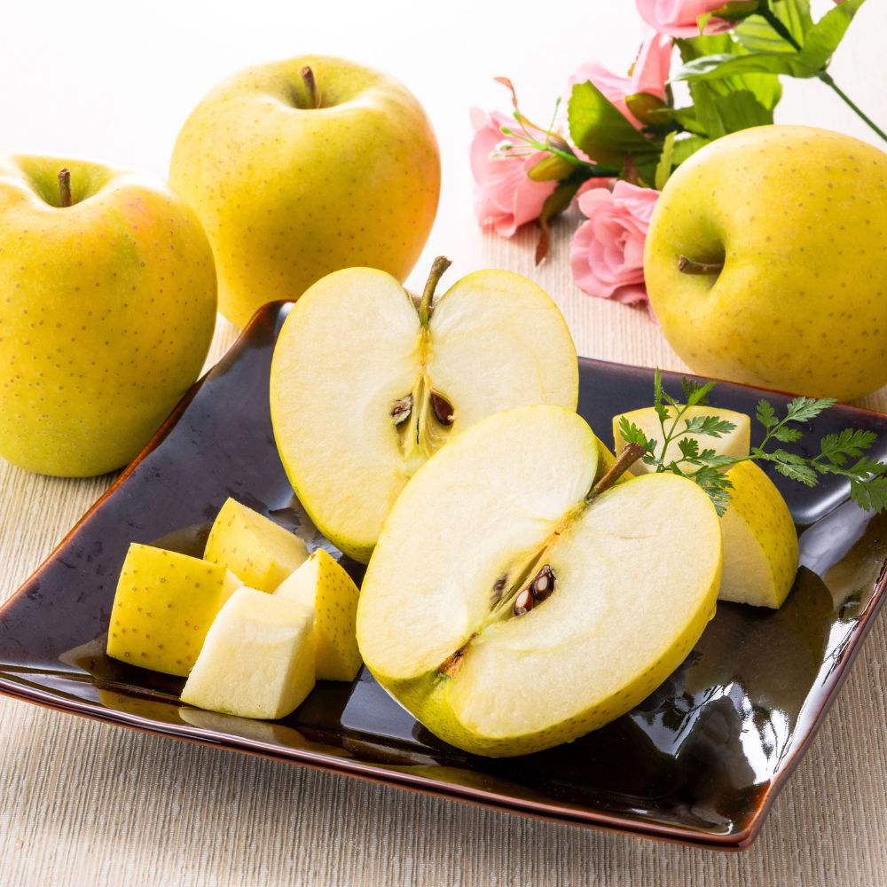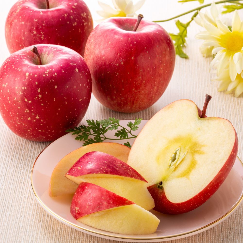 赤りんごはコクのある甘みと芳醇な香り、青りんごはさっぱりとした酸味とみずみずしさが特長。まずは皮ごとくし形にカットして、食感・甘酸っぱさの違いをシンプルに味わうのがおすすめです。