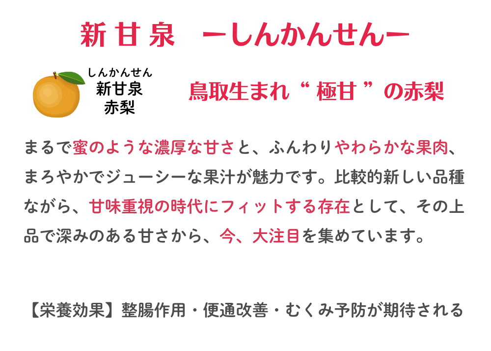 鳥取生まれの赤梨系高糖度品種。