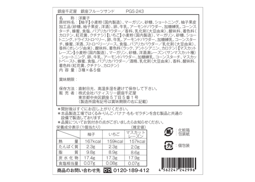 | 内容量 | マスカットレーズン・いちご・柚子 各5個 |