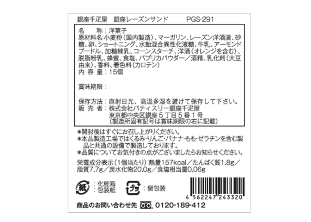 | アレルギー情報 | 乳・小麦・卵・大豆・アーモンド・オレンジ |
